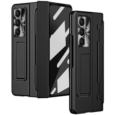 Toiminnallinen suojakuori, jossa on ulosvedettävä jalusta täydellinen videopuheluihin tai suoratoistoon. Integroitu näytönsuoja suojaa etunäyttöä. Korotetut reunat suojaavat kameraa ja näyttöä, kun puhelin asetetaan tasaiselle pinnalle.