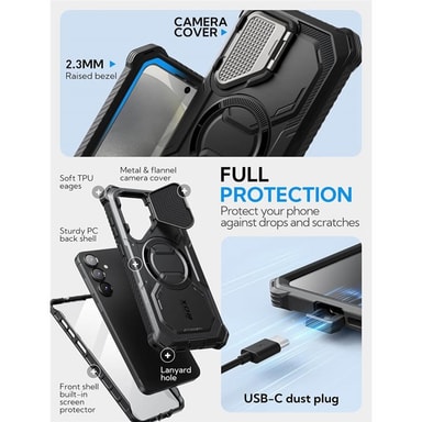 i-Blason Armorbox tarjoaa optimaalisen suojan puhelimellesi. Pehmeä iskunvaimentava TPU-kerros, kova PC-materiaali ja metallinen kamerakansi tekevät tästä suojakuoresta erinomaisen valinnan, joka suojaa puhelinta tehokkaasti iskuilta, putoamisilta ja naarmuilta.