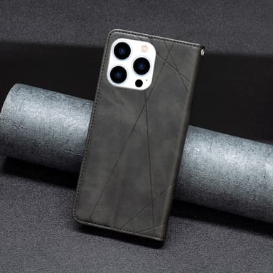 iPhone 15 Pro BINFEN COLOR Kohokuvioitu Lompakkokotelo - Musta
