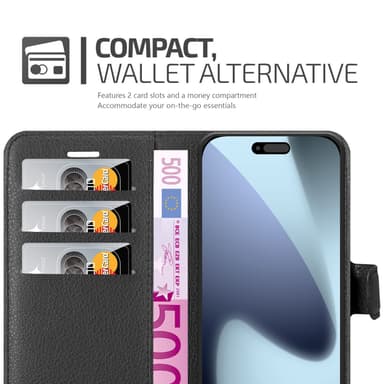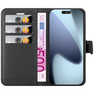 iPhone 17 PRO MAX Suojakuori Lompakkokotelo (Musta)