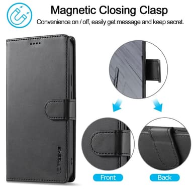【Ensiluokkainen vasikannahkamateriaali】 Valmistettu PU-nahasta ja TPU-materiaalista, jossa on sileä vasikannahkapinta, 360 asteen täysi suoja【Toiminnallinen lompakko】 Kaksi korttipaikkaa, yksi valokuvalokero ja yksi käteislokero luottokorttien ja kätTutustu ominaisuuksiin