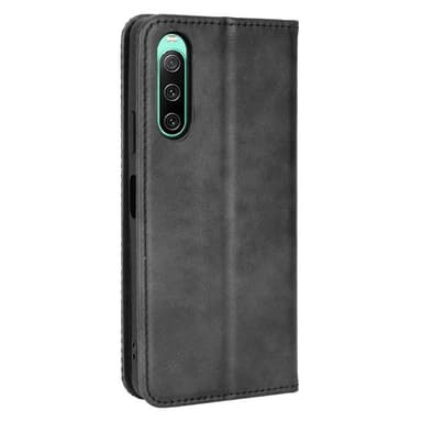 Vintage-tyylinen lompakkoteline Automaattisesti imeytyvä nahkainen puhelinkotel o Xperia 10 V:lle - musta Vintage-tyylinen PU-nahka, tyylikäs ja herkän käden tuntuinen Lom pakon muotoilu: 2 korttipaikkaa + 1 valokuvapaikka + 1 käteistasku T uki handsTutustu ominaisuuksiin