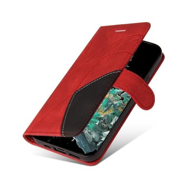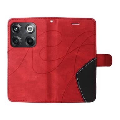 OnePlus 10T/Ace Pro KT -sarjalle Kak sivärinen liitoskotelo PU-nahkainen käsilaukkuteline lompakko iskunkestävä kääntökansi hihnalla - punainen Valmistettu PU-nahasta ja TPU-materiaalista, kaksikerroksinen suojaus Muodikas kaksivärinen liitosmuotoiluTutustu ominaisuuksiin