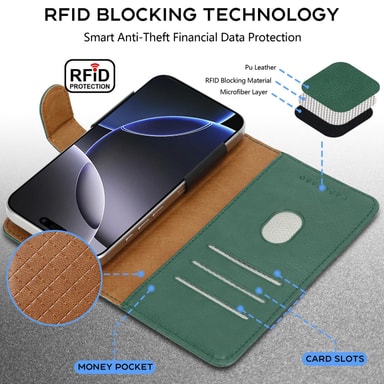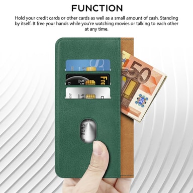 Monitoiminen: Realme 13-laitteille sopiva universaali suojakotelo tarjoaa magneettikiinnitys, 2 korttipaikkaa ja rahapussin. Se on käytännöllinen lompakko, joka taitettuna muuttuu iskunkestäväksi 360 asteen kännykkäkoteloksi.