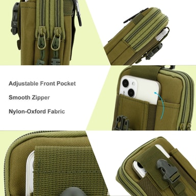 Cadorabon taktinen matkapuhelinkassi maastokuvassa sopii erinomaisesti ulkoilijoille. Se on 185 mm korkea ja 125 mm leveä, ja siinä on tilaa jopa 6,7 tuuman älypuhelimille. Se on ihanteellinen patikointiin, retkeilyyn, lenkkeilyyn ja muihin ulkoilma-aktiviteetteihin, ja se pitää tärkeät tavarasi turvassa ja käden ulottuvilla.
