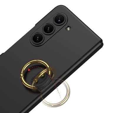 Tyylikkään näköinen läppäkotelo, jonka takana on rengas paremman pidon takaamiseksi.