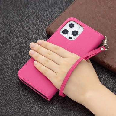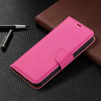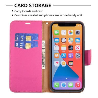 Ensiluokkainen PU-nahkainen lompakkokotelo, jossa on korttipaikat.