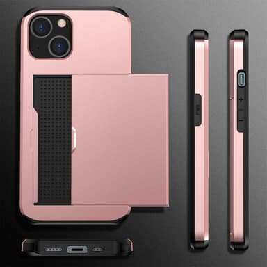SKALO iPhone 14 Armor Suojakuori korttikotelo - Ruusukulta