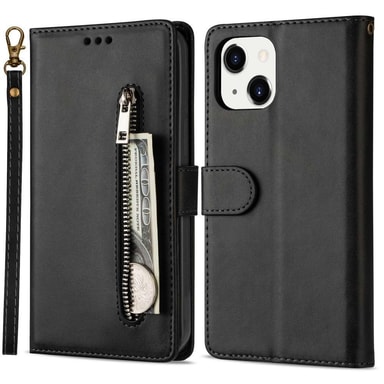 SKALO iPhone 15 Plus Lompakkokotelo PU-nahkaa vetoketjulla - Musta