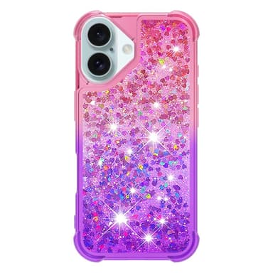 SKALO iPhone 16 Plus Juoksuhiekka Glitter Sydämet TPU kuori - Pinkki-Violetti