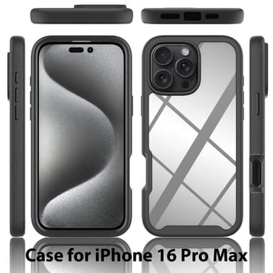 SKALO iPhone 16 Pro Max Iskunkestävä Clear Hybridi Suojakuori - Musta