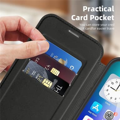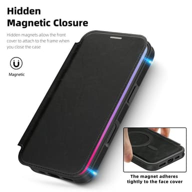 Tämä tyylikäs kuori tarjoaa erinomaista suojaa sisäänrakennetuilla magneeteilla. Saumaton MagSafe-yhteensopivuus mahdollistaa nopean langattoman latauksen joka kerta. Kuori on valmistettu kestävästä TPU:sta ja tyylikkäästä PU-nahasta. Kätevät korttipaikat mahtuvat helposti henkilökorttisi tai luottokorttisi. RFID-esto teknologia suojaa henkilötietosi luvattomalta skannaukselta. Korotetut reunat suojaavat näyttöä ja kameraa tehokkaasti.
