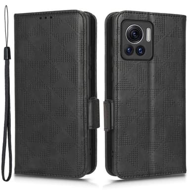 SKALO Motorola Edge 30 Ultra 5G Embossed Triangle Lompakkokotelo - Musta