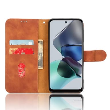 SKALO Motorola Moto G23 4G Matt PU Nahka lompakkokotelo - Ruskea