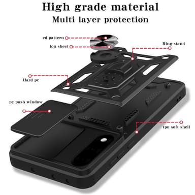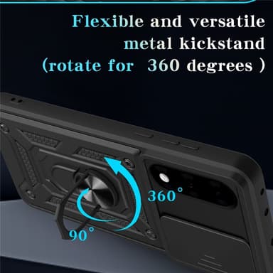 Koe äärimmäistä suojaa ja toiminnallisuutta Armor Metallinen rengas -kamerasuojuksella. Tämä suojakuori on suunniteltu antamaan puhelimellesi elegantin ulkonäön samalla, kun se suojaa sitä päivittäisiltä kolhuilta. Sisäänrakennettu pyörivä rengas helpottaa puhelimen käyttöä yhdellä kädellä ja katselukulman säätöä, ja magneettisen pidikkeen yhteensopivuus varmistaa vakaan sijoituksen autossa.