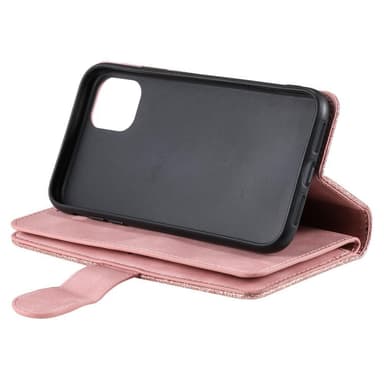 Lompakkokotelo, jossa on mokkanahkaa ja modernia muotoilua, ja jossa on yhteensä 13 lokeroa.