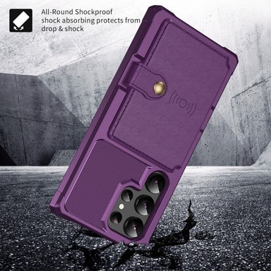 Tämä iskunkestävä kuori on valmistettu korkealaatuisesta TPU: sta ja PU-nahasta, mikä antaa sille hienostuneen ulkonäön ja mukavan otteen. Kuori suojaa puhelintasi iskuilta ja kolhuilta iskunvaimennusmateriaalien ja vahvistettujen kulmien ansiosta. Koholla olevat reunat suojaavat näyttöä ja kameraa naarmuilta. Sisäänrakennetun metallilevyn ansiosta kuori on helppo kiinnittää magneettisiin autotelineisiin. Käytännöllinen korttipaikka tarjoaa tilaa jopa viidelle kortille ja turvallinen painonappi estää tahattoman avaamisen.
