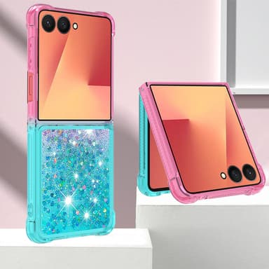 SKALO Samsung Z Flip7 Hiekka Glitteri Suojakuori - Pinkki-Turkoosi