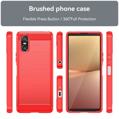 SKALO Sony Xperia 10 VI Armor Carbon Iskunkestävä TPU suojakuori - Punainen