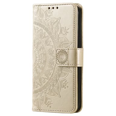 PU-nahasta valmistettu lompakkokotelo, jossa on moderni mandala-malli ja korttipaikat.
