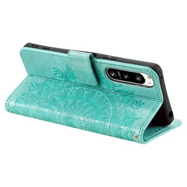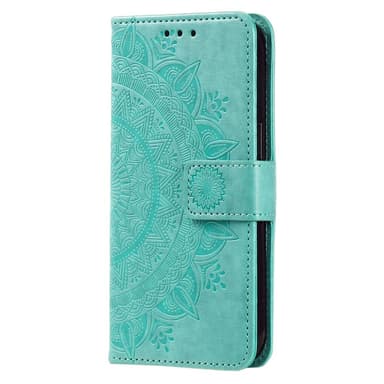 PU-nahasta valmistettu lompakkokotelo, jossa on moderni mandala-malli ja korttipaikat.