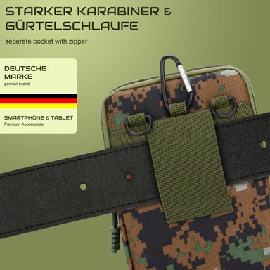 Molle EDC pussi Xiaomi POCO F2 PRO:lle tarjoaa optimaalisen säilytystilan: kaksinkertaiset vetoketjulokerot, kaksi sisätaskua, liukutasku ja kynäteline tarjoavat runsaasti tilaa. Etutasku sopii enintään 6,7 tuuman matkapuhelimille.