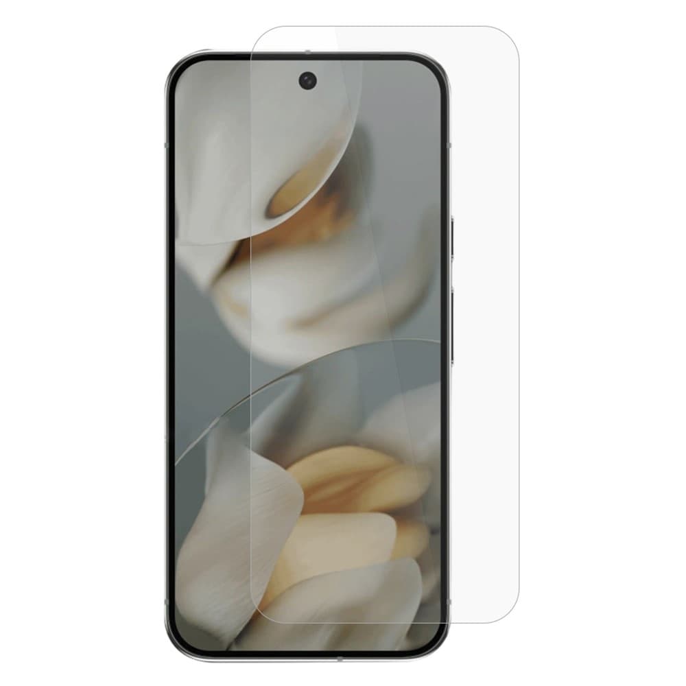 Kestävä ja naarmuuntumaton karkaistua lasia oleva näytönsuoja, jonka kovuus on 9H.
