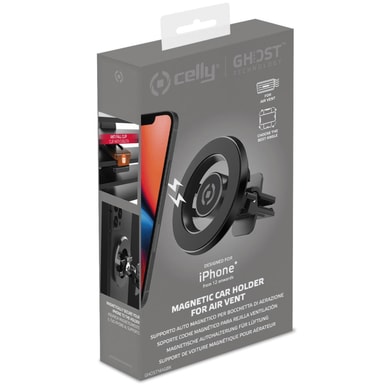 Med den superstarka, justerbara klämman som har ett inbyggt skydd mot att hållaren ramlar av gallret, gör att du säkert kan fästa GHOSTMAG i luftgallret i din bil.