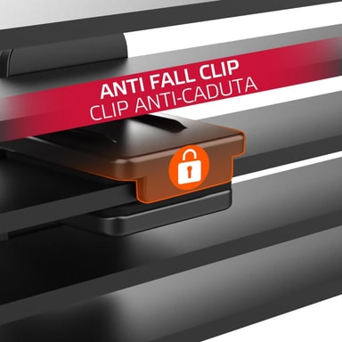 • Klämma med anti-fall system (skydd mot att hållaren ramlar av gallret)