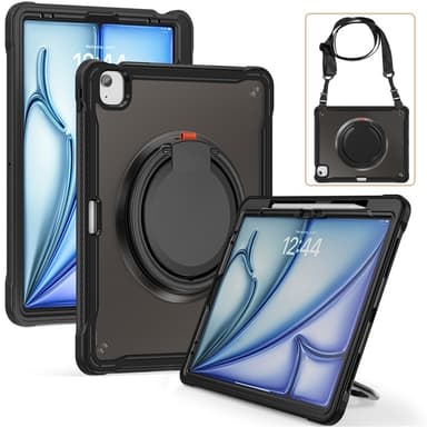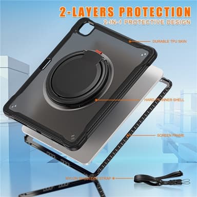 Tämä kestävä suojakuori yhdistää toiminnallisuuden ja suojan älykkääseen muotoiluun. 360 astetta pyörivä kahva mahdollistaa laitteen ripustamisen mihin tahansa, tarjoten monipuoliset kantovaihtoehdot. Paksunnetut silikonikulmat vaimentavat iskuja tehokkaasti ja suojaavat tablettia pudotuksilta ja kolhuilta. Kaksikerroksinen rakenne, jossa on kestävä TPU-kuori ja kova PC-sisäkuori, tarjoaa kattavan suojan. Sisäänrakennettu jalusta tukee sekä vaaka- että pystyasentoa, mahdollistaen katselukulman säätämisen. Säädettävä nailonhihna pikakiinnikkeillä helpottaa kiinnitystä esimerkiksi auton istuimeen – täydellinen viihteeseen liikkeellä ollessa. Sivussa oleva kynäpaikka pitää styluksen kätevästi saatavilla (stylus ei sisälly).