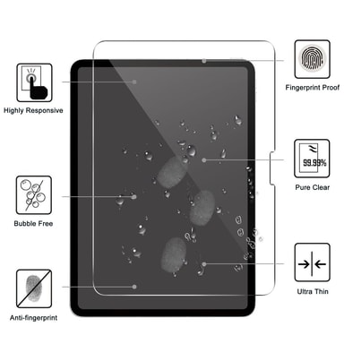 Kestävä ja naarmuuntumaton karkaistua lasia oleva näytönsuoja, jonka kovuus on 9H.