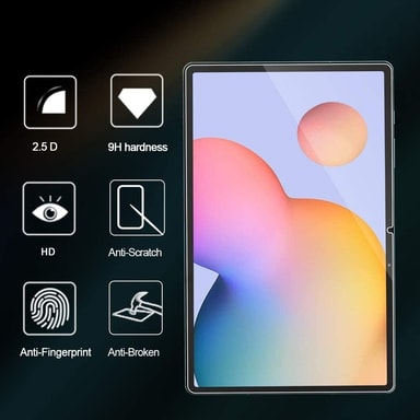 Kestävä ja naarmuuntumaton karkaistua lasia oleva näytönsuoja, jonka kovuus on 9H.