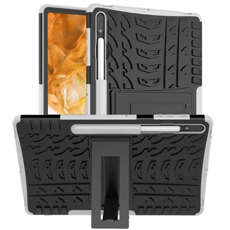 Iskunkestävä kuori jalustalla Samsung Galaxy Tab S8 11.0 - Valkoinen