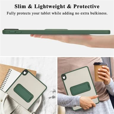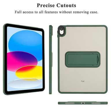 Color Hybrid Kickstand on monipuolinen ja suojaava tablettikotelo, joka on valmistettu ihoystävällisistä TPU- ja PC-materiaaleista ja tuntuu kädessä miellyttävältä ja pehmeältä. Sisäänrakennettu, taitettava tuki helpottaa sisällön katselua ilman, että laitetta tarvitsee pitää kädessä – sekä pysty- että vaaka-asennossa. Iskua vaimentavat Air Guard -kulmat suojaavat tablettiasi tehokkaasti pudotuksilta ja iskuilta. Korotetut reunat kameran (2,0 mm) ja näytön (5,0 mm) ympärillä tarjoavat lisäsuojaa naarmuja ja vaurioita vastaan. Tarkat leikkaukset takaavat helpon pääsyn kaikkiin portteihin ja toimintoihin ilman, että koteloa tarvitsee irrottaa. Ohut ja kevyt muotoilu tekee siitä helpon kantaa mukana kaikkialle.
