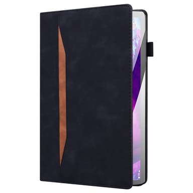 Tämä tyylikäs PU-nahasta ja TPU-materiaalista valmistettu suojakotelo yhdistää kestävyyden ja ammattimaisen ulkonäön. Materiaalit tarjoavat suojaa ja tyyliä pitkäaikaiseen käyttöön. Sivussa oleva kynäsilmukka pitää stylus-kynän kätevästi mukana (kynä ei sisälly). Sisäänrakennetut korttipaikat helpottavat tärkeiden korttien säilytystä, ja jalustatoiminto mahdollistaa mukavan handsfree-käytön. Joustava hihna pitää kotelon tiukasti suljettuna ja suojaa tablettia naarmuilta ja kulumiselta.