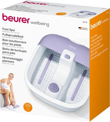 Beurer FB12 -jalkakylpy tarjoaa rentouttavaa tärinää ja kuplahierontaa väsyneille jaloille. Se ylläpitää veden lämpötilaa ja stimuloi verenkiertoa jalkojen vyöhyketerapian avulla. Siinä on liukumattomat jalat ja roiskesuoja.Tutustu ominaisuuksiin
