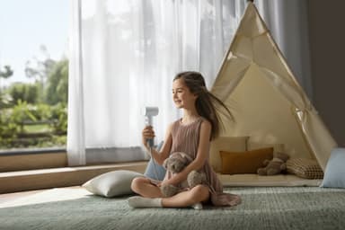 Kevyt Dreame Mini -hiustenkuivaaja lämpenee vain 3 sekunnissa, siinä on 1200 watin harjaton moottori ja 5 lämpötila-asetusta sekä 40℃ lapsiturvallinen tila nopeaan, helppoon ja matkustusystävälliseen hiustenkuivaukseen.Tutustu ominaisuuksiin