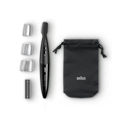 BRAUN Precision Trimmerissä on kaksi kiinnikettä (5 mm ja 8 mm) joustavaa ja tarkkaa parranleikkuuta varten sekä erittäin pieni kiinnike, joka mahdollistaa erittäin tarkat linjat. Trimmeri ja trimmaustarvikkeet voidaan pestä kokonaan juoksevalla vedellä. Pakkaus sisältää pariston (AAA) ja säilytyspussin.