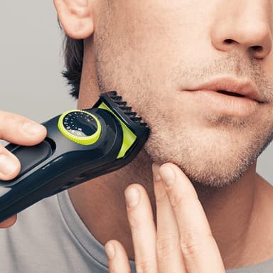 • Precisionsväljare och två kammar tillhandahåller 39 längdinställningar från 0,5–20 mm i steg om 0,5 mm för kort till långt skägg
