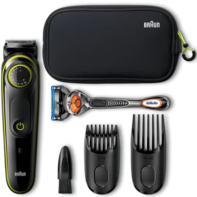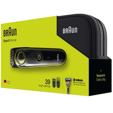 Skapa olika skäggstilar med Braun BT3941 laddningsbara skäggtrimmer och hårtrimmer. 39 längdinställningar och hållbart vassa blad för ultimat precision och jämnt snitt. Helt tvättbar skäggtrimmer/hårklippare för män.