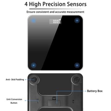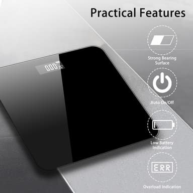 Vakaa ja vankka, vaaka kestää painoja alkaen 200 grammasta 180 kiloon asti. Sen tarkkuus on 10 grammaa, eli 0,01 kg. Vaaka on suorakaiteen muotoinen pyöristetyillä kulmilla vammojen ja epätäydellisyyksien estämiseksi. Sen pohjassa on myös joustavat kumijalat, jotka estävät liukastumisen ja takaavat siten paremman pidon ja turvallisuuden.. Selkeän näkyvän digitaalisen LCD-näytön avulla voit seurata tarkasti ja jatkuvasti urheilun edistymistä ja painoa jne. elääksesi terveellisemmin. USB-portin avulla on helppo ladata nopeasti jo ennestään pitkäkestoinen akku. Lisäksi vaaka on pölyn- ja kosteudenkestävä.
