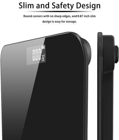 Vaaka on suorakaiteen muotoinen ja pyöristetyt kulmat estämään loukkaantumisia ja omituisia. Sen pohjassa on myös joustavat kumijalat, jotka estävät liukastumisen ja takaavat siten paremman pidon ja turvallisuuden.