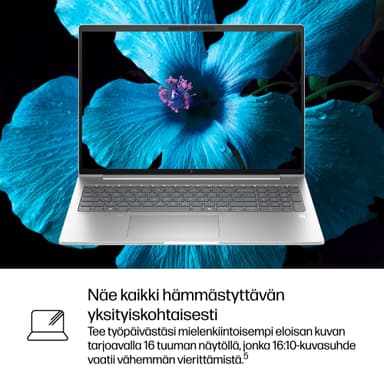 • Intel Core™ Ultra 5 225U (jopa 4,8 GHz Intel Turbo Boost -tekniikalla, 12 Mt:n L3-välimuisti, 12 ydintä, 14 säiettä)