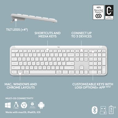 Logitech MK950 Slim Combo -näppäimistö ja -hiiri tarjoaa Bluetooth-yhteyden ja langattoman liitännän jopa kolmeen laitteeseen, säädettävän DPI-arvon, Logi Options+ -sovelluksen, vuosia kestävän akun ja paljon muuta.Tutustu ominaisuuksiin