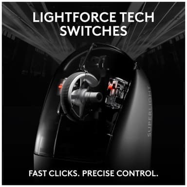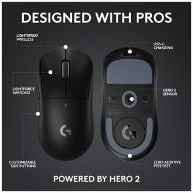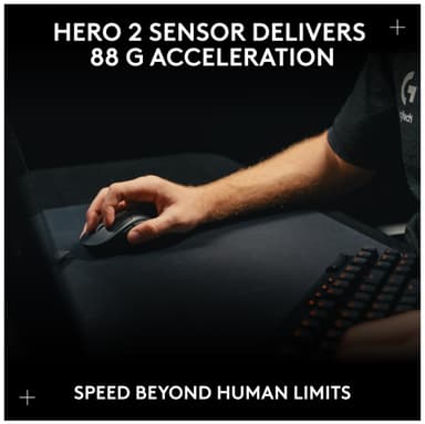 Langaton Logitech G Pro Superlight 2 Compact -hiiri on erittäin kevyt, ja siinä on säädettävä, jopa 44 000 DPI-arvo, optinen Hero-2-anturi, matalan viiveen langaton Lightspeed -USB-yhteys, mukautettavat painikkeet ja mukava muoto.Tutustu ominaisuuksiin