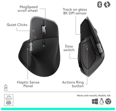 Langaton Logitech MX Master 4 -hiiri tarjoaa mukautettavan haptisen palautteen, Actions Ring -pikavalinnat, ergonomisen muotoilun ja luotettavan yhteyden, jotka takaavat saumattoman ja tarkan hallinnan sekä jopa 70 päivän akkukeston.Tutustu ominaisuuksiin
