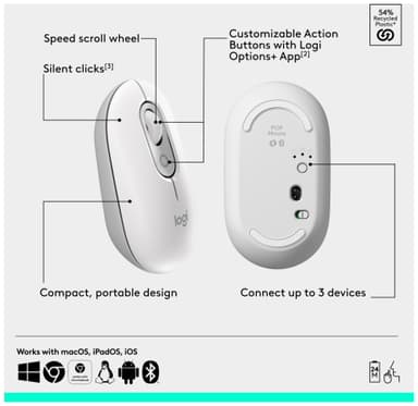 Logitech POP -hiiri on hiljainen ja kevyt kumppani kaikkiin töihin. 4000 DPI optisen sensorin lisäksi hiiressä on SmartWheel, FLOW-monilaiteyhteys sekä yksinkertainen Bluetooth-liitäntä, ja akkukesto on jopa 2 vuotta.Tutustu ominaisuuksiin