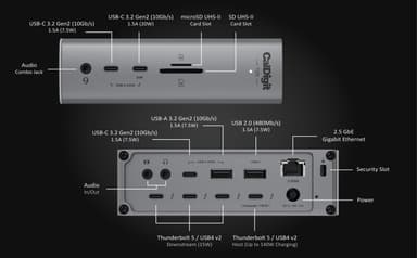CalDigit TS5 - 15 Porttia Thunderbolt 5 Telakointiasema, 140W Lataus, 4X Thunderbolt 5, 4x 10Gb/s USB Porttia