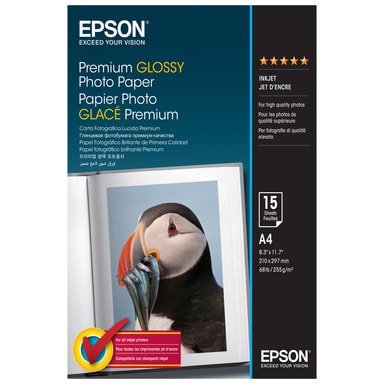 Valokuvasi tulostuvat korkealaatuisina ja kiiltäväpintaisina Epson Premium Glossy -valokuvapaperille. Pakkaus sisältää 15 arkkia.Tutustu ominaisuuksiin