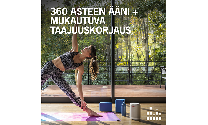 Mukautettava taajuuskorjaus: Mukauta taajuuskorjausta tai valitse Boom-sovelluksesta haluamasi esiasetus, kuten Syvärentoutus-, Podcast- tai Pelitila.